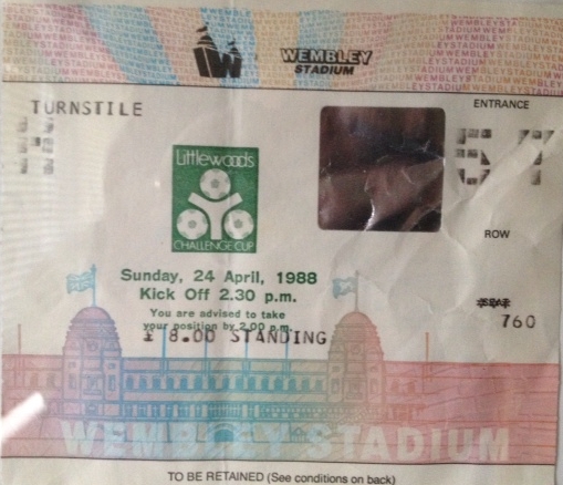 As today is the final of the League Cup (Capital Cup) between Bradford City and Swansea City I thought it would be a good idea to post a picture of the League Cup ( Littlewoods Cup) that Luton Town won in the best final ever when they beat Arsenal 3-2 at Wembley on 24/8/1988. With seven minutes left to play Luton were losing 2-1 , but with goals from Danny Wilson and Brian Stein we went on to win the game. What a great day!.