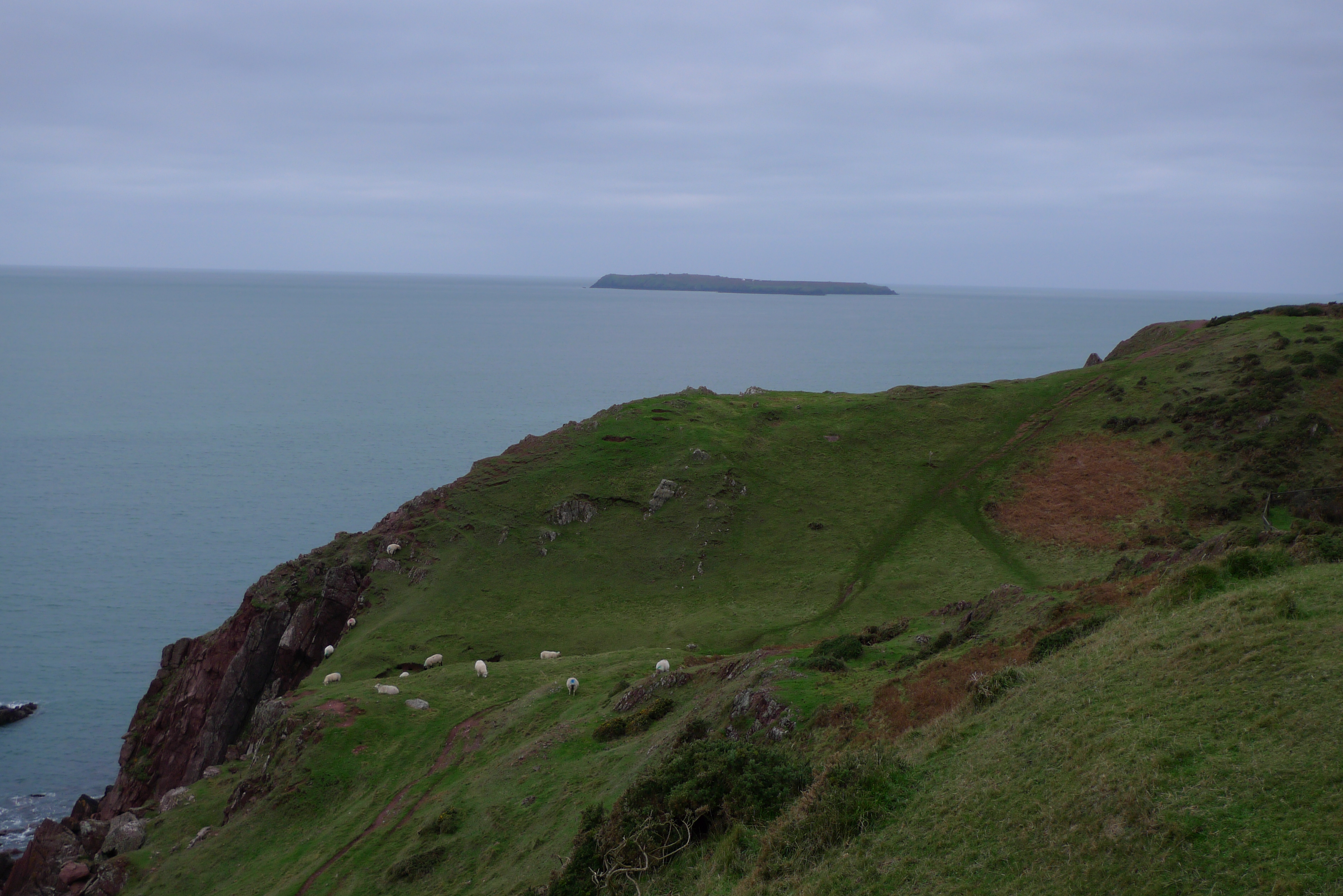 An Orphean Warbler was identified in a garden in south west Wales near St Brides, originally thought to be a Lesser Whitethroat its real identity was discovered when photographs were published online on the Pembrokeshire Birds website. Access was arranged to the garden and volunteers organised the twitch, sorting out parking in a field nearby and allowing groups of about 40 into the garden to view the bird at any one time. They even put up a sign about two miles away to point the correct turn to take. Everyone appeared to be very well behaved and it went very well. We had travelled down Friday night and stayed near Swansea so we could be on site early Saturday morning. We later went to Dale airfield from where you could see Skokholm Island and we also visited Barry Island which is near Cardiff.