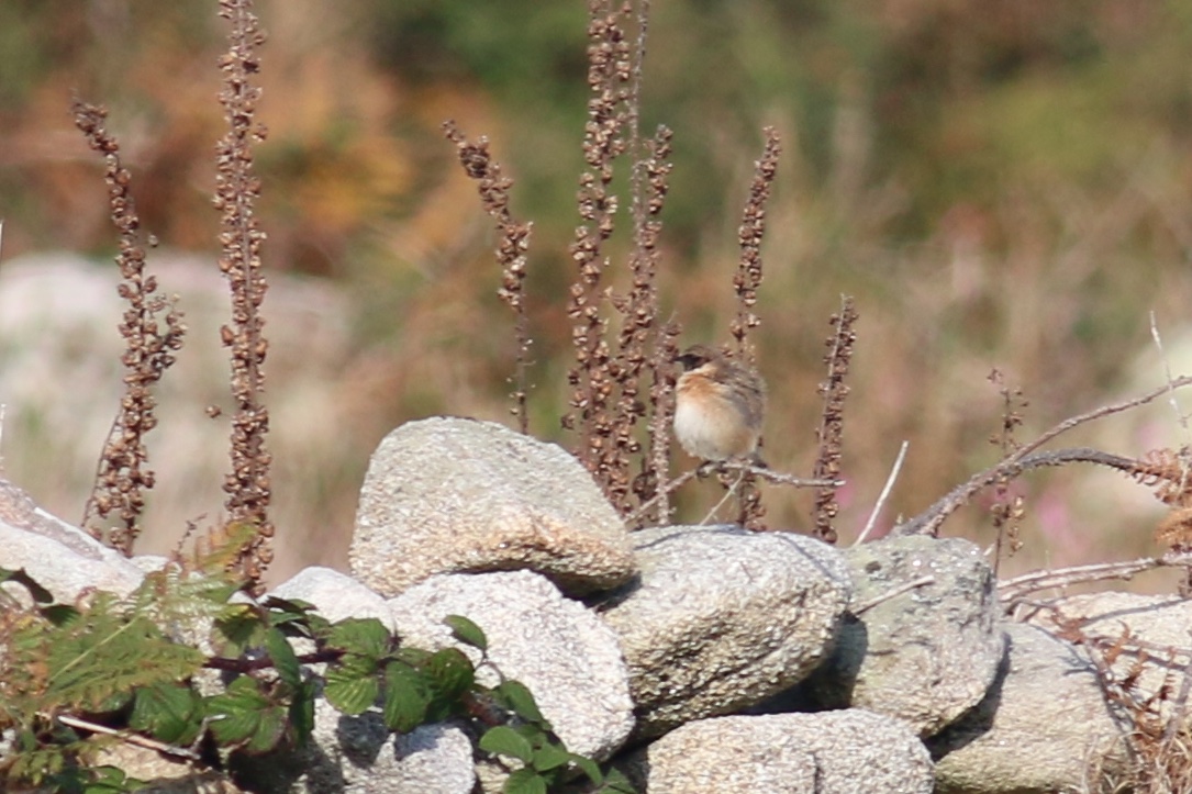 I went on the seabird and dolphin trip this morning. The first birds seen were 2 Great Northern Divers and a Spoonbill. We then went to Gimble Porth on Tresco where we has distant views of the Hudsonian Whimbrel found there yesterday. We saw Buzzard, Hen Harrier, Peregrine and Kestrel as we made our way out to Sea. Other interesting sightings were the Life boat and rescue helicopters on a mission looking for a boat that had sent a “mayday” message. There was a brief sighting of a Minke Whale and some Harbour Porpoise.We were lucky to finish the 3 hour trip with possibly 100’s of Common Dolphin which were great to see as they were all around the boat. In the afternoon I went up to Content to see if I could get any better pictures of the Siberian Stonechat and on the way managed a few photos of a Firecrest.